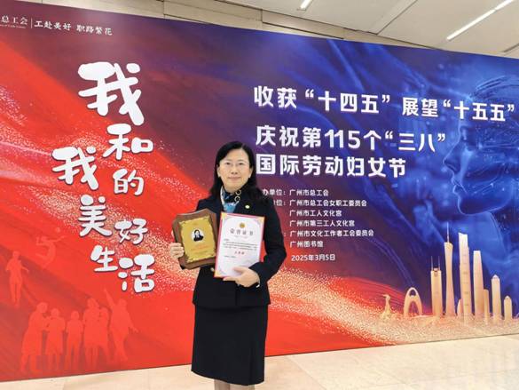 2025年3月5日,在第115個“三八”國際勞動婦女節來臨之際,紡織公司黨委副書記、工會主席、女職委主任丘海瀾憑借在女職工工作中的卓越表現,獲選為廣州市“女職工首席關愛官”。這一榮譽不僅是對丘海瀾同志個人工作的高度認可,更是對紡織公司工會及女職工委員會長期致力于女職工關愛工作的充分肯定。