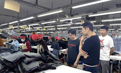 公司業務人員在孟加拉牛仔服裝生產基地現場