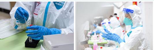 此次到現場為師生開展核酸檢測的12名醫護人員均來自暨南大學附屬第一醫院廣州華僑醫院。為了在最短時間內阻斷病毒傳播途徑、切斷感染鏈條,醫護人員堅守在核酸采集一線,一絲不茍地為每個受監測者采樣。他們在近期已是第五次接受“召集令”,馬不停蹄出戰支援學院開展核酸檢測工作。炎熱的天氣,加上厚重的防護服,汗水很快就浸濕了衣服,但他們不言苦累,一直奮戰到核酸檢測工作結束。